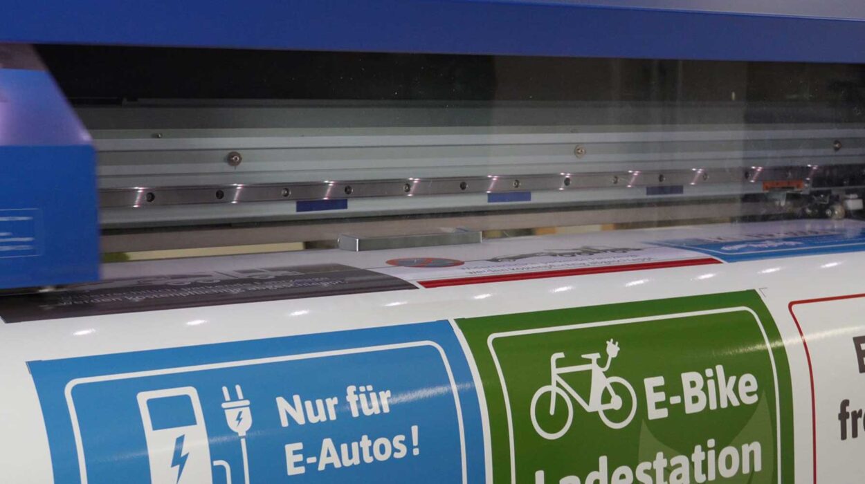 Parplatzhinweise und Ladesäulenschilder für E-Autos, E-Bikes oder E-Roller.