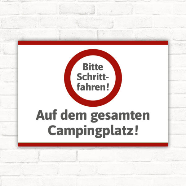 Schild Bitte Schrittfahren auf dem gesamten Campingplatz
