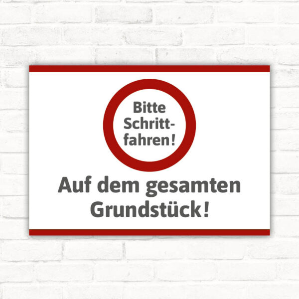 Schild Bitte Schrittfahren auf dem gesamten Grundstück