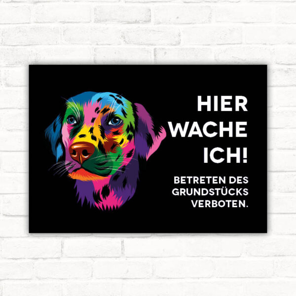 Dalmatiner sind nicht nur hübsch anzusehen, sie haben auch eine lebhafte und fröhliche Persönlichkeit. Diese Hunde sind bekannt für ihre Intelligenz und ihren starken Willen. Sie sind loyal und beschützend, was sie zu idealen Wachhunden macht. Mit dem Schild „Dalmatiner – Hier wache ich!“ gibst du Besuchern einen klaren Hinweis darauf, dass sie es mit einem wachsamen und liebevollen Hund zu tun haben, der bereit ist, sein Revier zu beschützen.