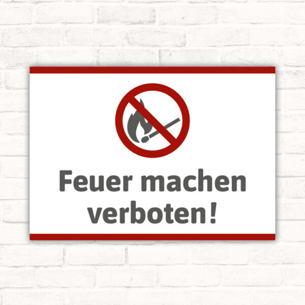 - Klare Information: Die gut sichtbare Inschrift “Feuer machen verboten” macht deutlich, dass in dem betreffenden Bereich keine offenen Flammen erlaubt sind.